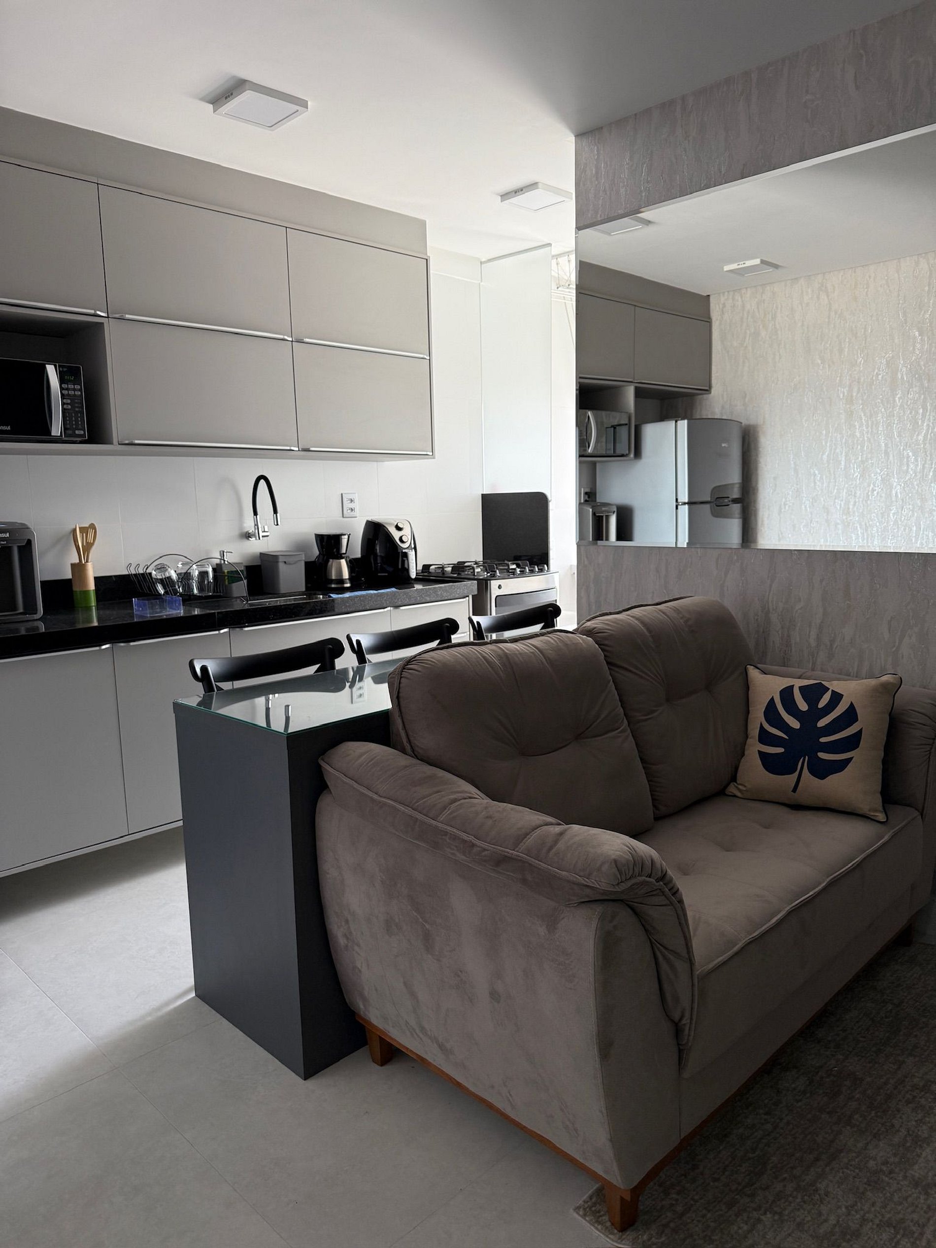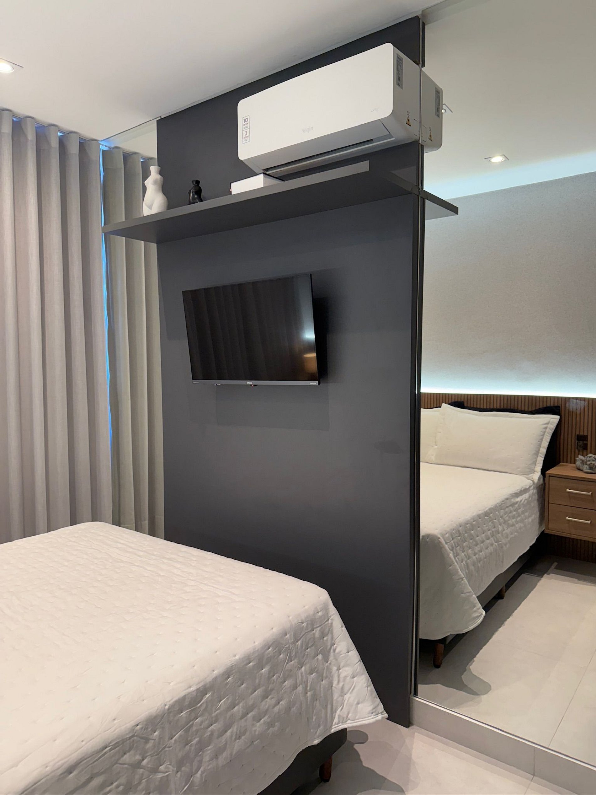 Desfrute de um apartamento mobiliado, com cozinha, sala e quartos, além de um banheiro completo e privativo. Os hóspedes têm acesso a uma piscina na cobertura com uma vista linda, uma academia moderna e sauna completa. Este studio encontra-se próximo a Praia de Itaparica.
