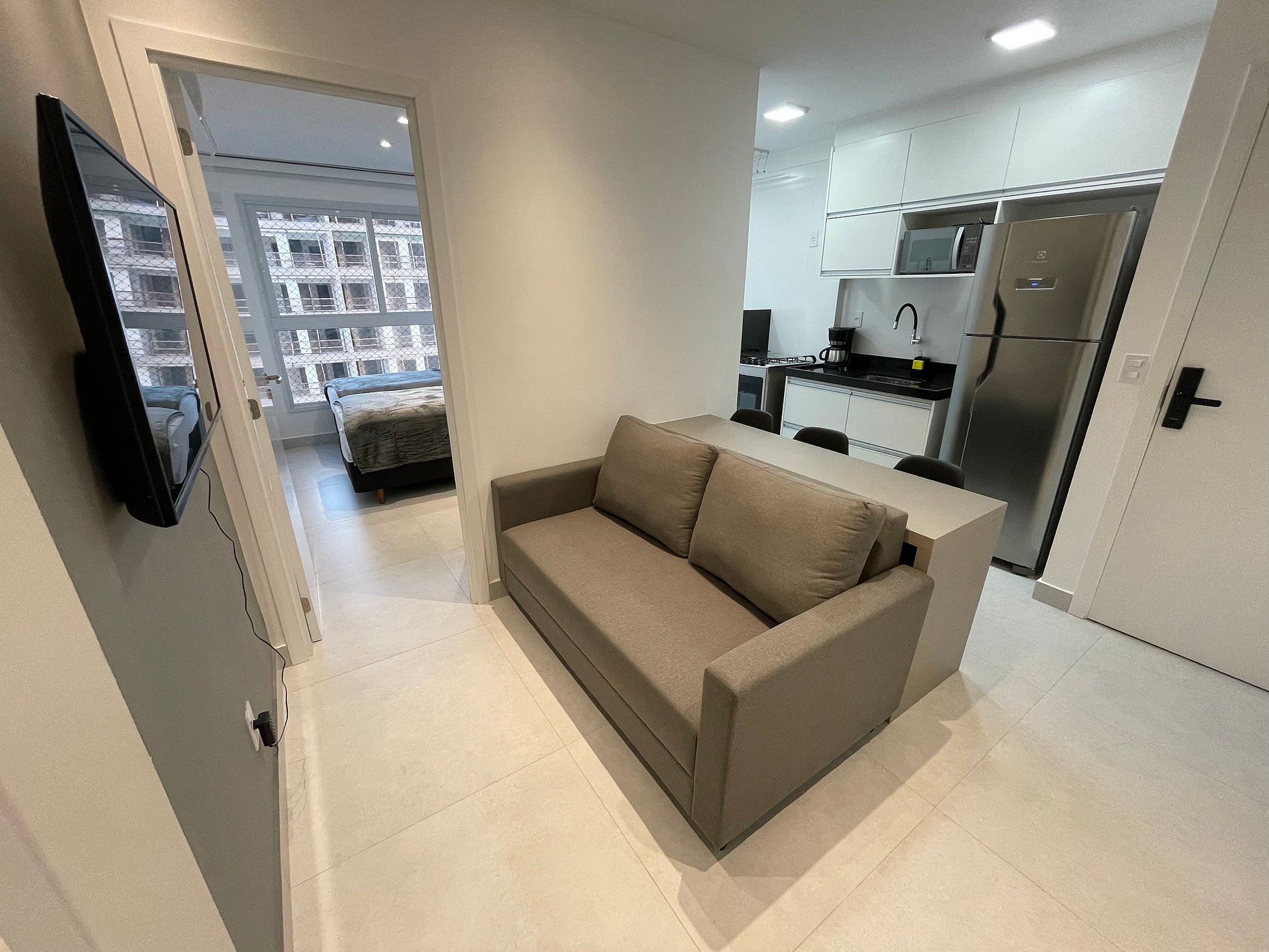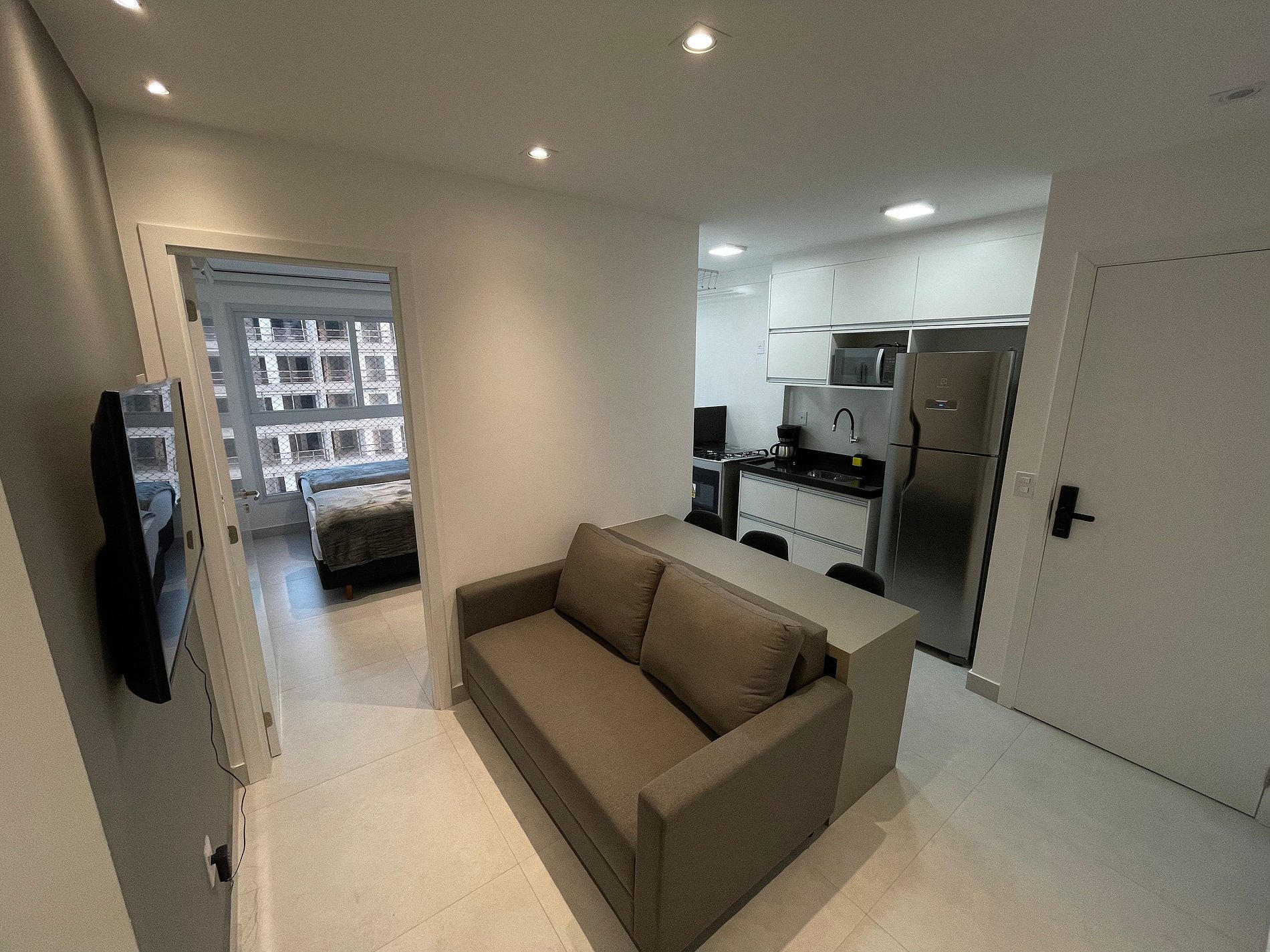 Desfrute de um apartamento mobiliado, com cozinha, sala e quartos, além de um banheiro completo e privativo. Os hóspedes têm acesso a uma piscina na cobertura com uma vista linda, uma academia moderna e sauna completa. Este studio encontra-se próximo a Praia de Itaparica.