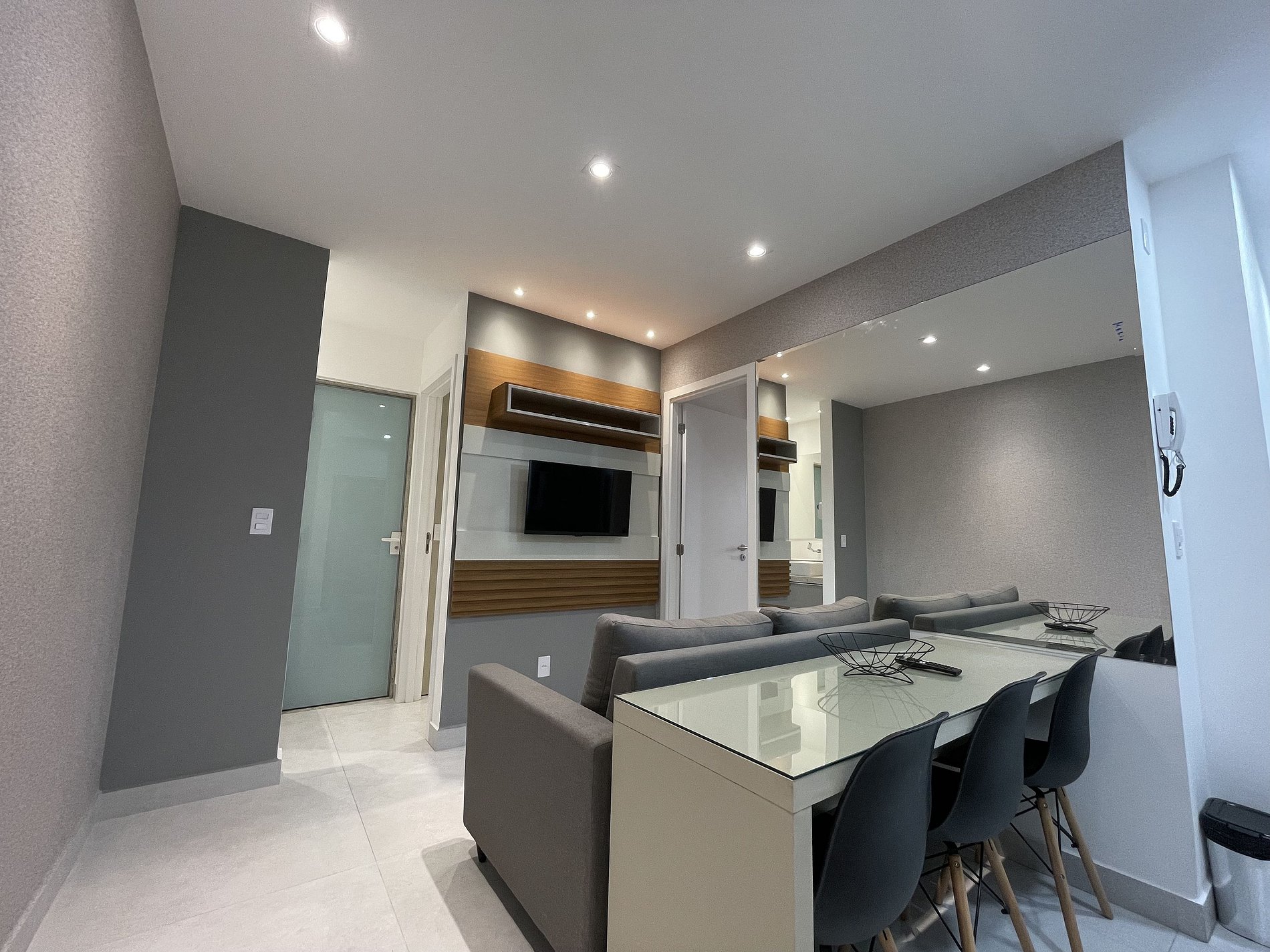 Desfrute de um apartamento mobiliado, com cozinha, sala e quartos, além de um banheiro completo e privativo. Os hóspedes têm acesso a uma piscina na cobertura com uma vista linda, uma academia moderna e sauna completa. Este studio encontra-se próximo a Praia de Itaparica.